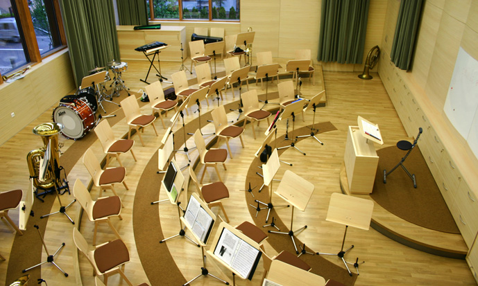 Im Jahr 2009 realisierten wir gemeinsam mit dem Architekturbüro Menz & Gritsch aus Meran den Proben- und Aufenthaltsraum der Musikkapelle Saltaus. Eine helle freundliche Einrichtung in Weißtannenholz mit zurückhaltenden Farben lassen der Musik den Vorrang. Jeder Winkel wurde als Stauraum genutzt. Der Aufenthaltsraum mit kleiner Küche bietet Platz für die Entspannung zwischen den Proben.